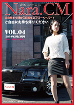 Nara.CM(奈良ドットシーエム)という、奈良県のローカル誌です。 奈良県のイベントをピックアップしたり、イベントのレビュー、 バイクのメンテナンス記事等もあります。 広告の大半は、車やバイク関連ですが、整骨院や飲食店やペットサロン等。 専用のサイトは現在製作中ですが、車やバイク情報は、 アクセルネット(http://www.ax-el.net)と提携しています。 2014年7月発行号で本フリーペーパーは一旦休刊となりました。