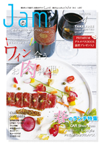ワインに合うお肉料理今回のJam4月号は、「朝はゆっくり起きて、お昼はカワイイLunch、夜はちょっぴり大人にWine & Meat」。ということで、休日のお店探しには嬉しい内容♪ Jam片手にこの春をお楽しみ下さい!